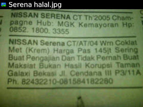 Di jual Nissan Serena CT/AT/04 Wrn Coklat Met (Krem) Harga Pas 145jt Sering buat Pengajian dan Tidak Pernah Buat Maksiat Bukan Hasil Korupsi... Sudah laku Gan...